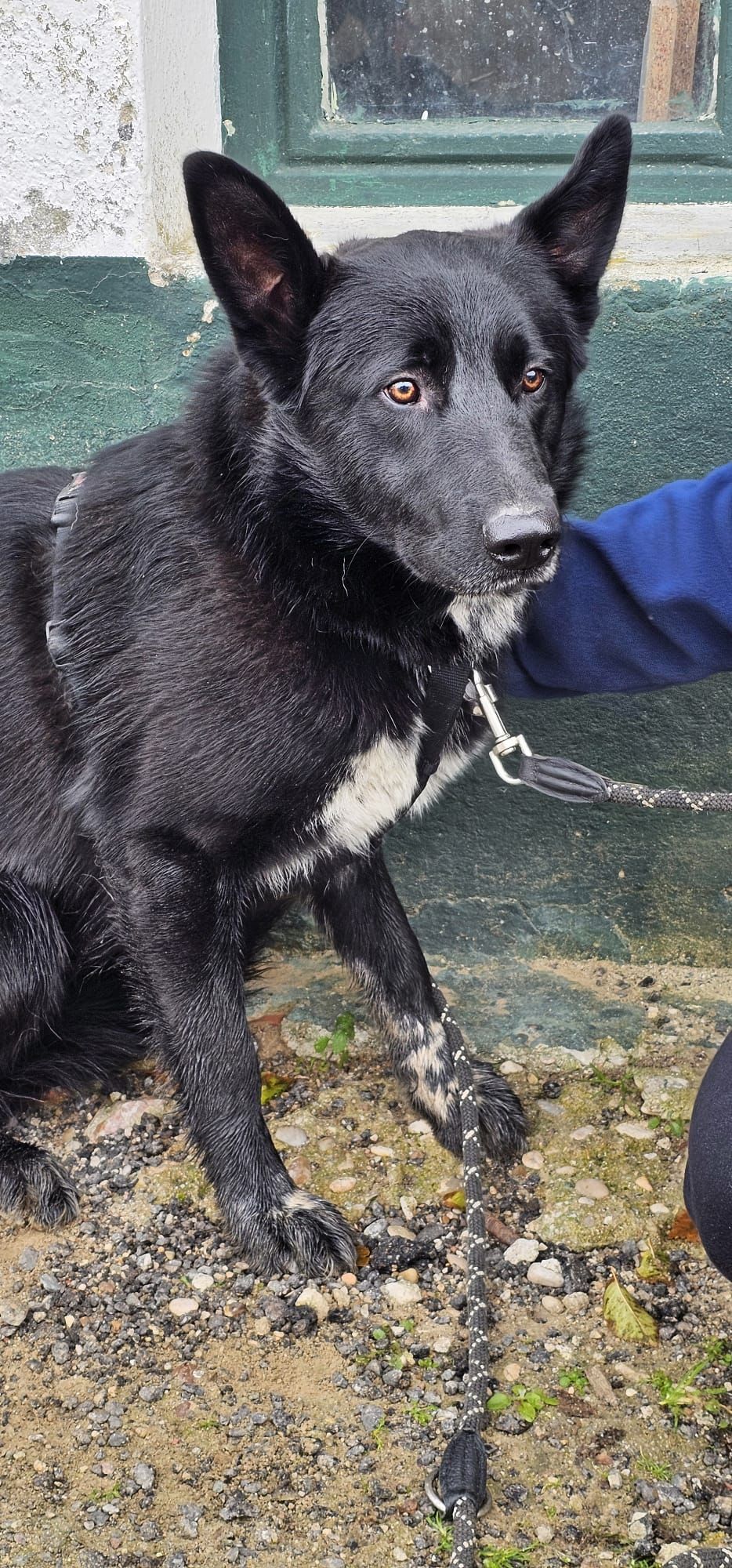 Ayro vagaba sin rumbo por la carretera, tras un buen rato evitando que le atropellasen consiguieron cogerle y nos pidieron ayuda para el. El pobre tenia pánico, estaba tan asustado que no nos dejaba acercarnos, huía de lado a lado del chenil, haciéndose bolita en el ultimo rincón, no quiero ni imaginar su pasado.