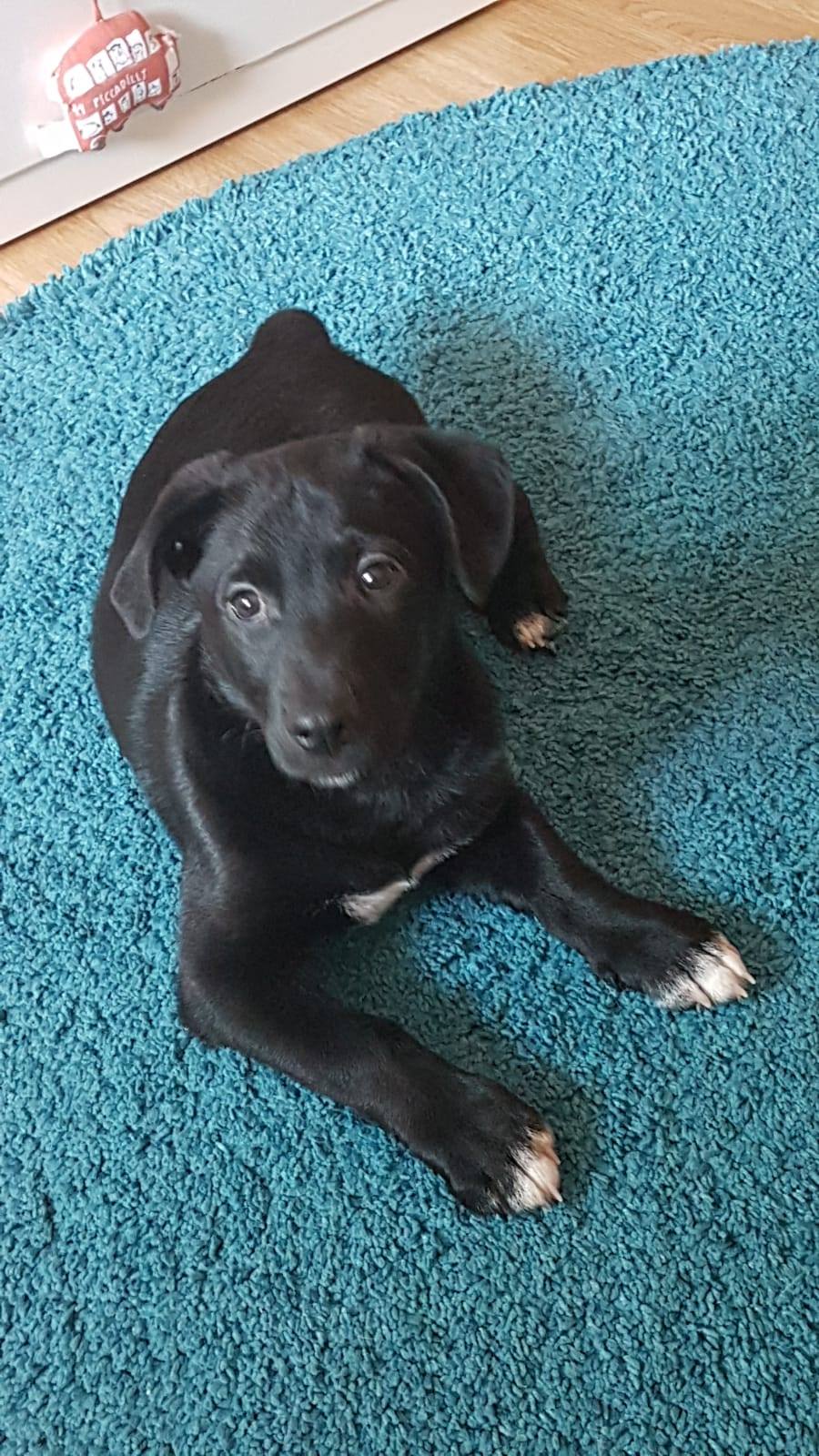 La mama de Oso apareció embarazada en un campo, una familia la encontró y nos pidió ayuda (ellos adoptaron a la mama) al poco tiempo tuvo 3 preciosos cachorritos (sus hermanos ya están adoptados).