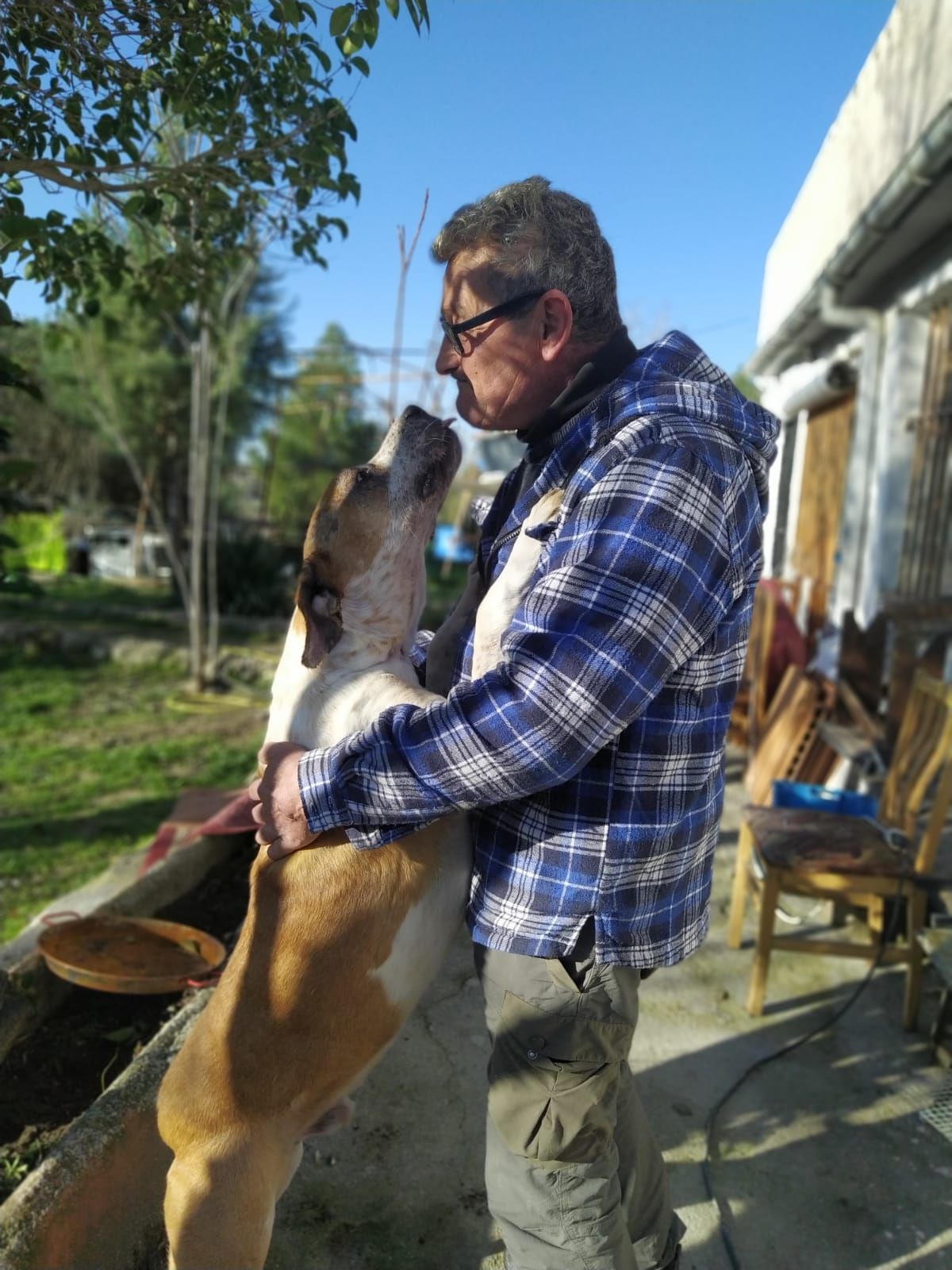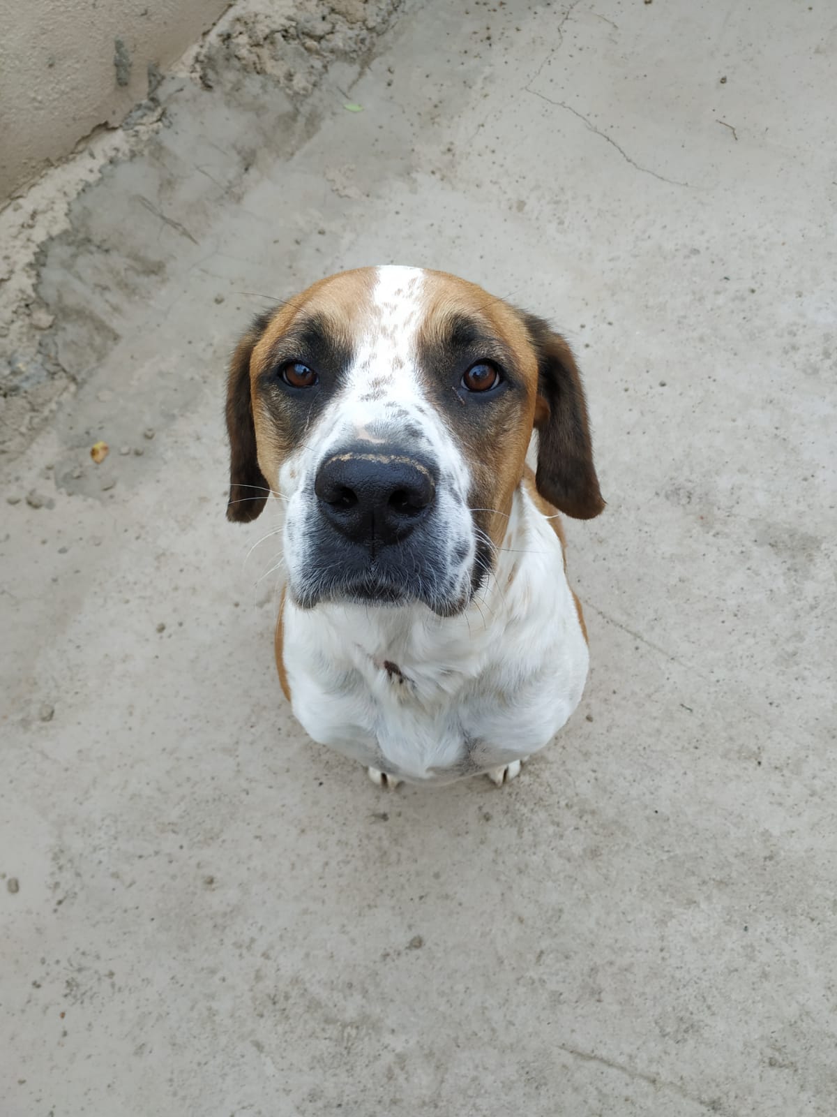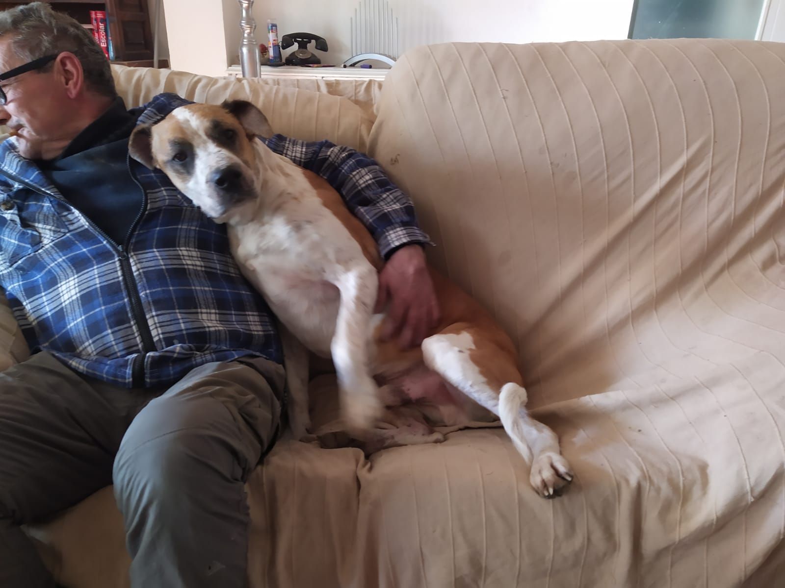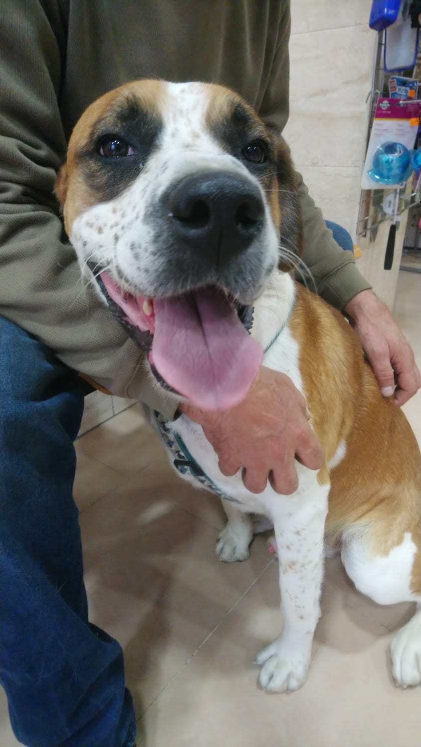 Es un perro con un pasado complicado, al principio es desconfiado, una vez que te conoce es el perro mas cariñoso del mundo.