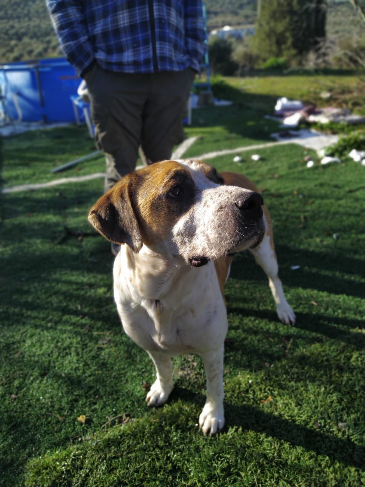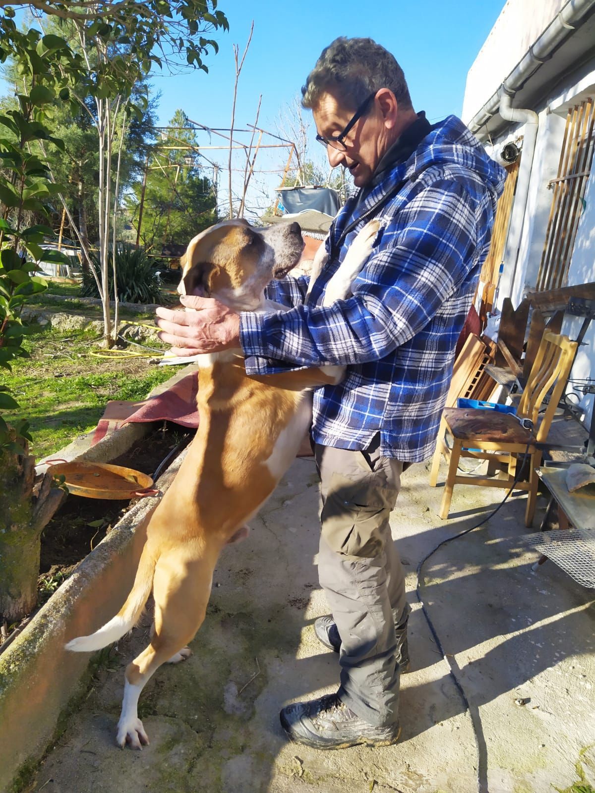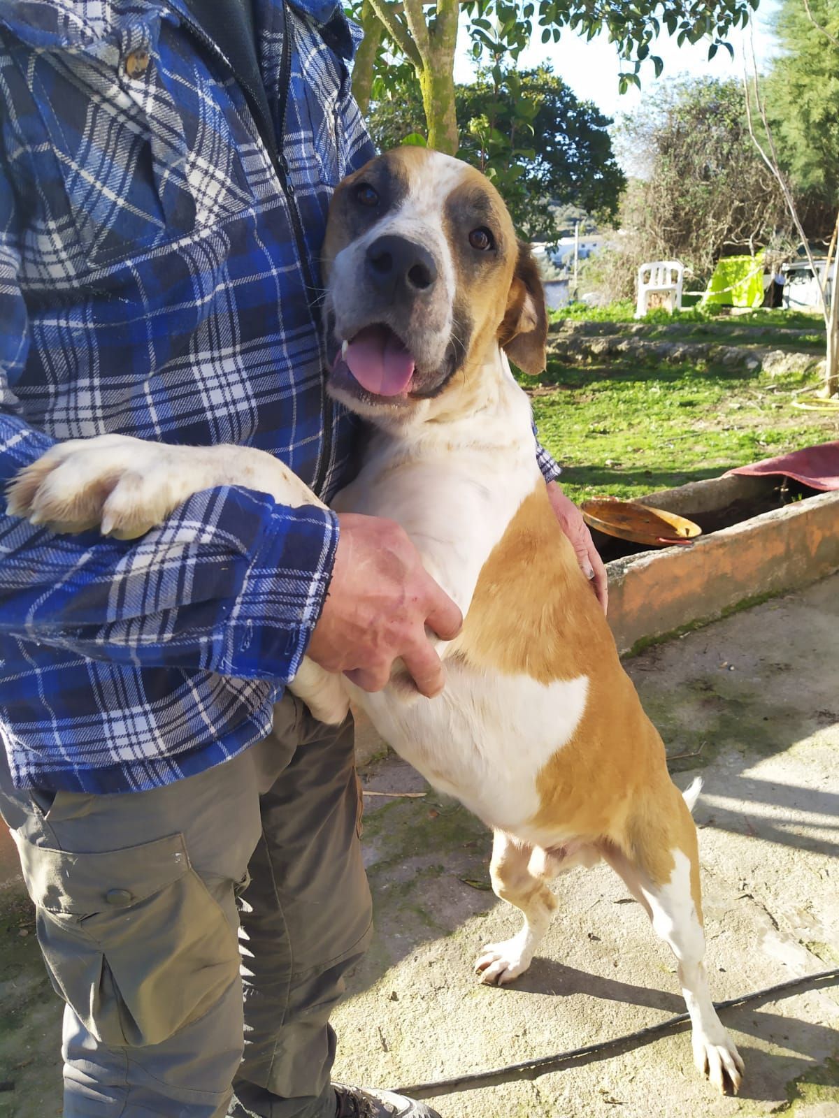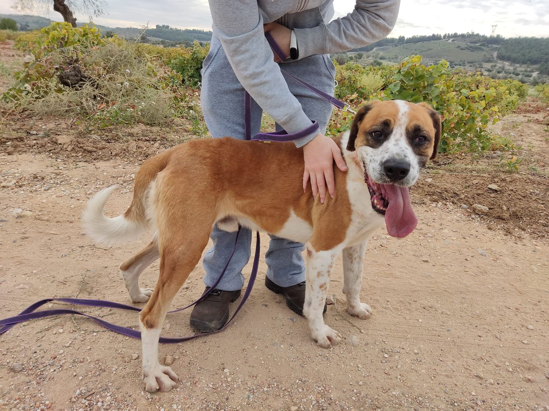 Es un perro con un pasado complicado, al principio es desconfiado, una vez que te conoce es el perro mas cariñoso del mundo.