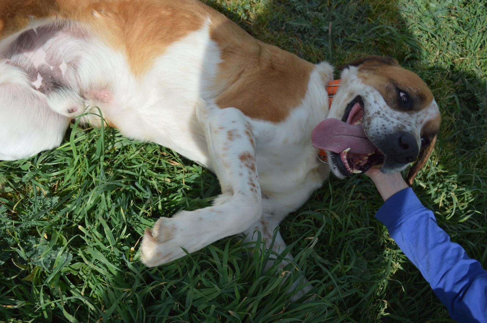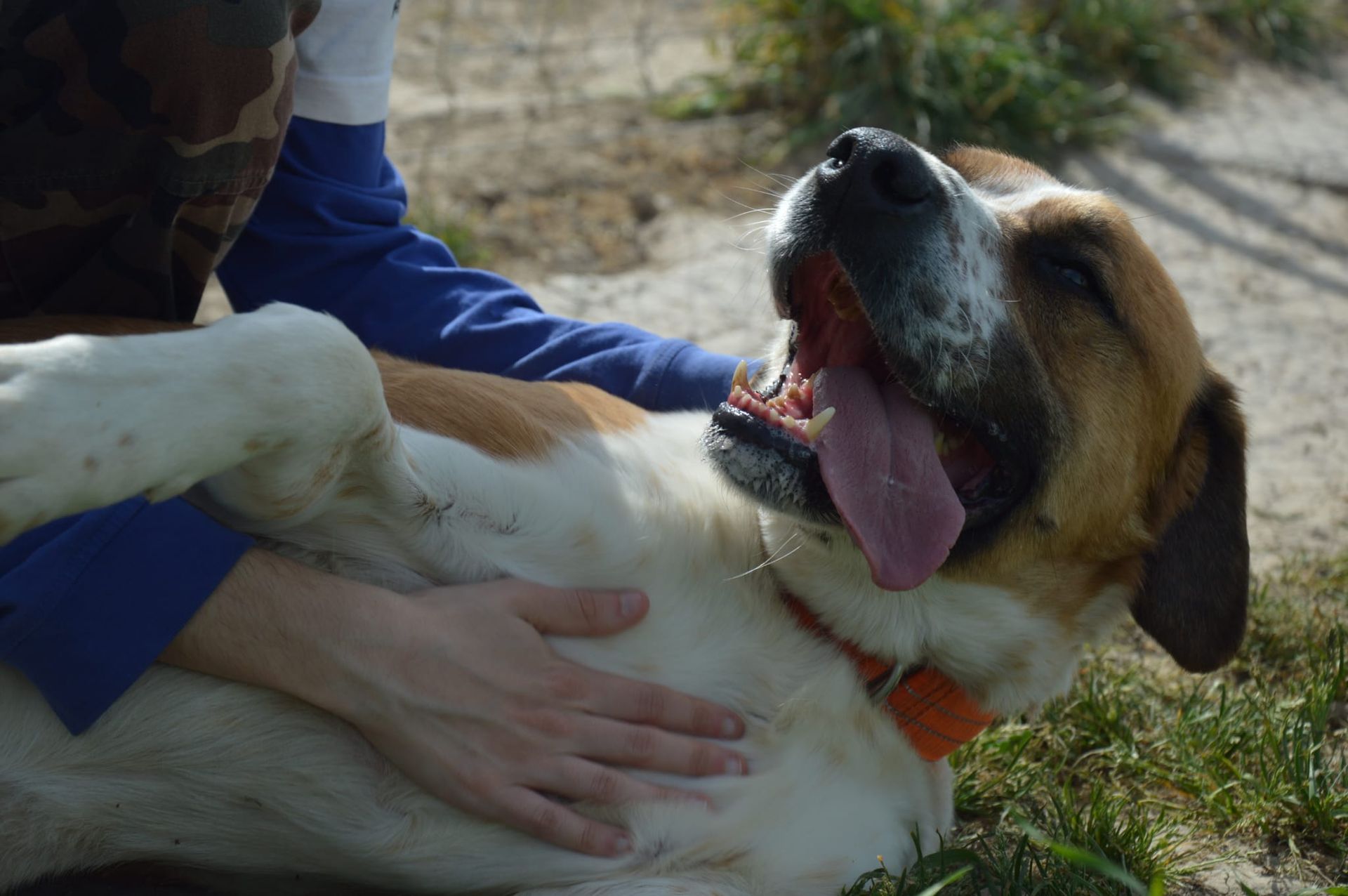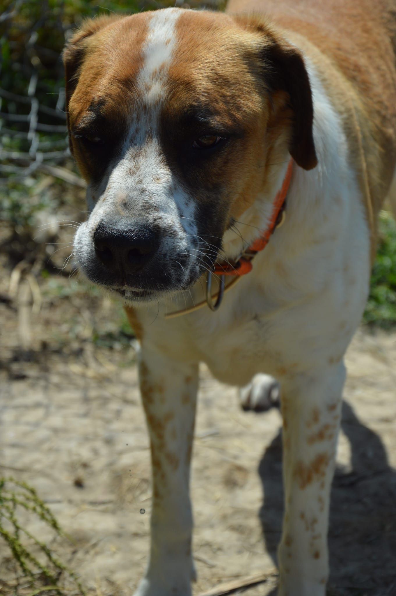 Roque llego a nosotros despues de que nos pidieran ayuda para el, estaba en una perrera del norte, con una cuerda incrustada en el cuello.