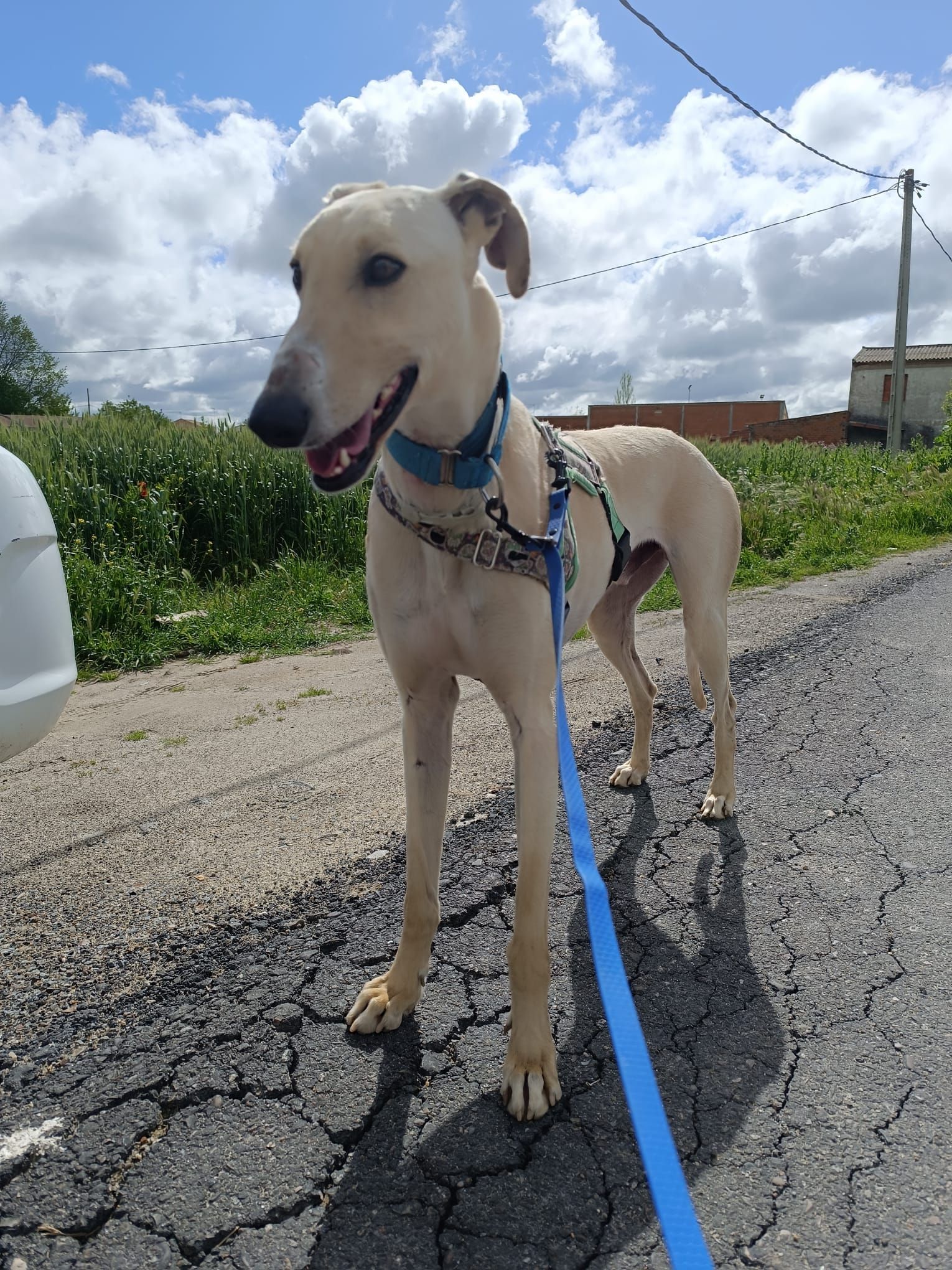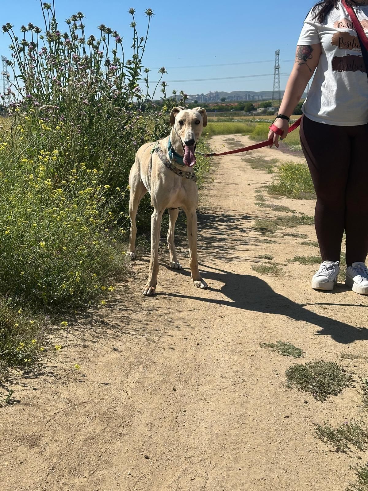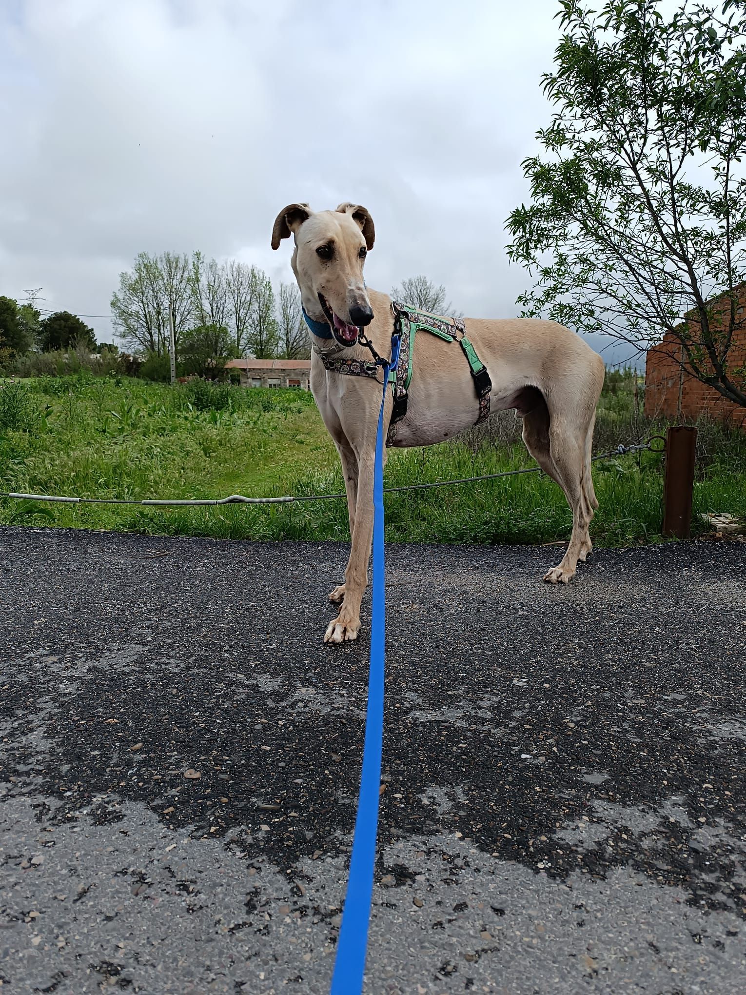 Nuestro galguito llego aterrado, con pánico a la vida, humanos y hasta a su sombra, eso si lo hizo después de pedir ayuda, y es que es muy listo y de todas las personas con las que se cruzo decidido que la persona indicada era una rescatista con toda la paciencia del mundo y su fiel compañera perruna. Gracias a ellas Sanchy se dejo coger y se puso a salvo.