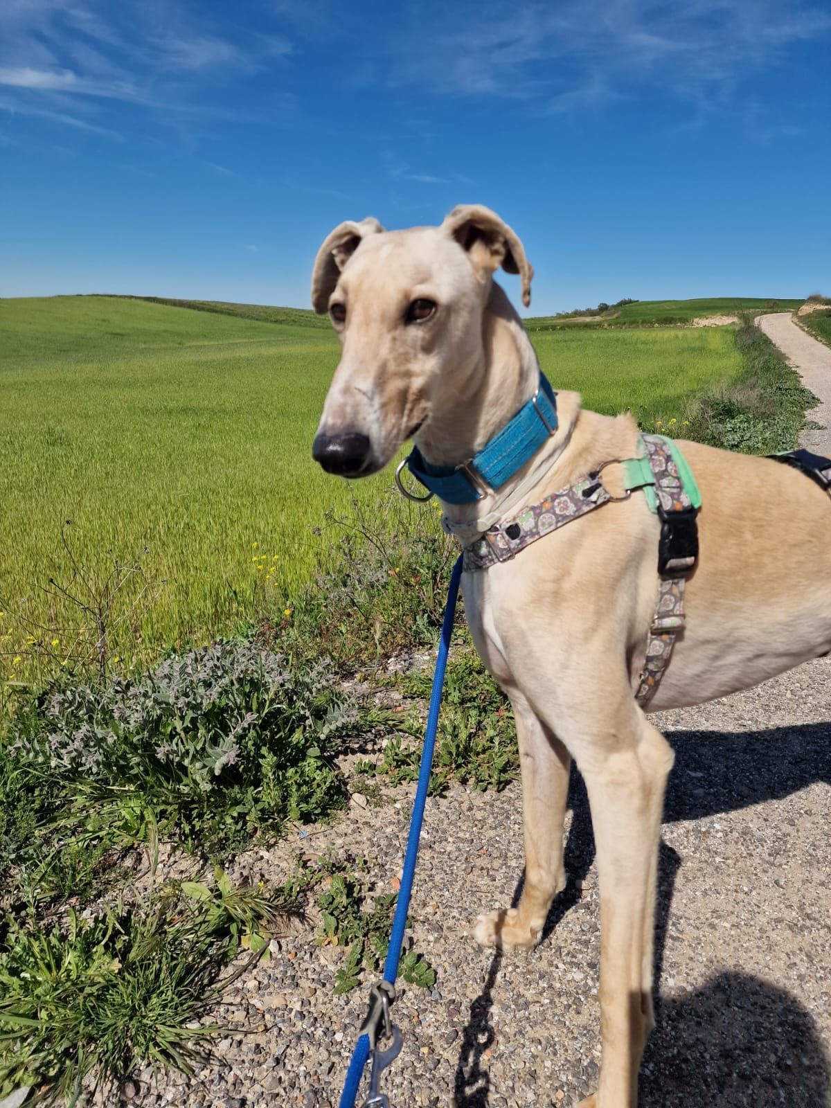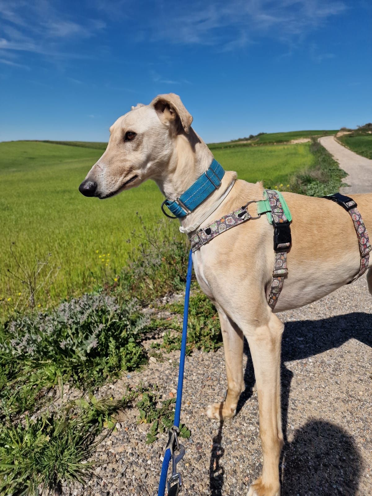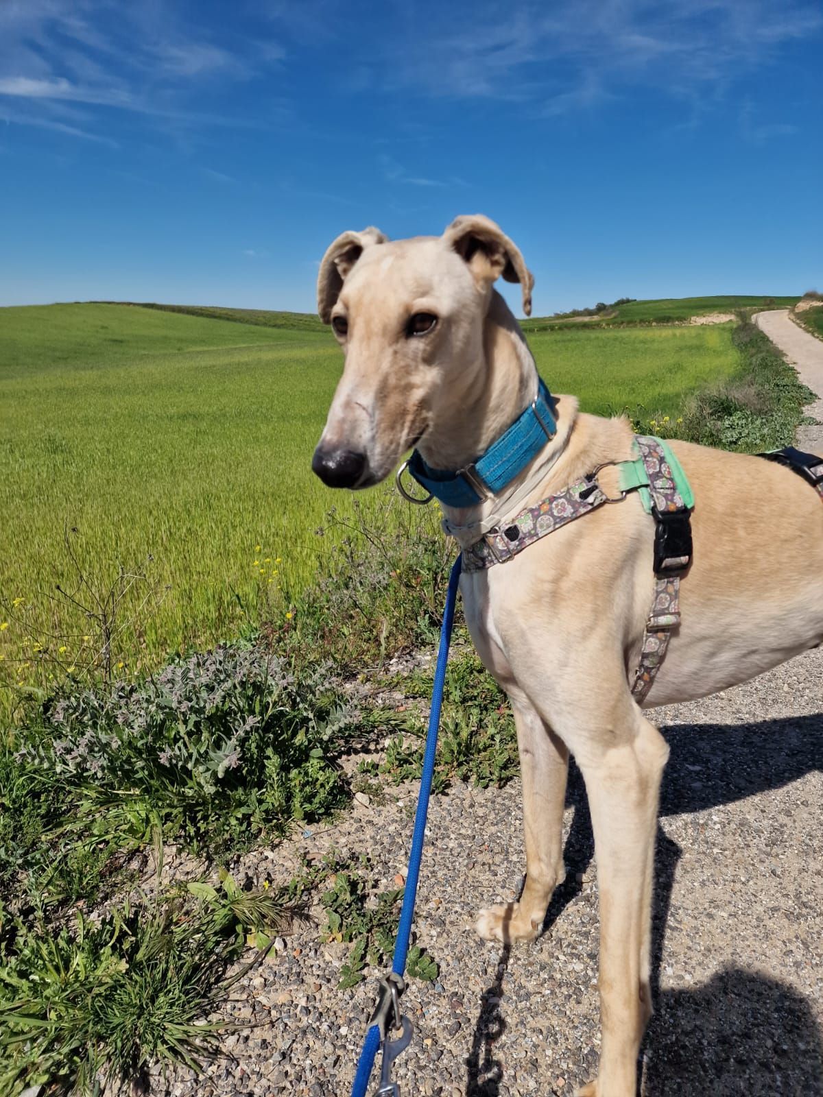 Desde entonces, Sanchy ha avanzado a pasos agigantados. Aunque todavía hay movimientos inesperados que le causan un poco de miedo si no conoce bien a la persona, se esfuerza muchísimo por confiar y se pone realmente contento cuando está con gente familiar. Ha mejorado muchísimo, pero aún le cuesta la manipulación, como ponerse un arnés o un abrigo, si no hay mucha confianza. ¡Estamos seguros de que en una casita, con la calma y el cariño adecuados, mejorará mucho mas rapido!